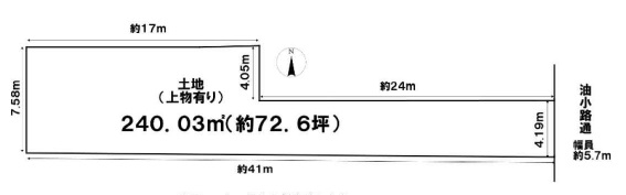 • 東側 幅員約5.7 m の公道 に 約4.1 m 接面